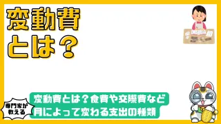 家計の支出は、大きく「固定費」と「変動費」に分けられます。家賃や通信費のように毎月ほぼ一定に出ていくお金が「固定費」、食費や交際費のように月によって変動するお金が「変動費」です。