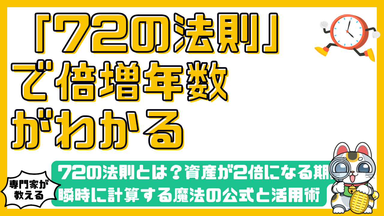 - 法則: 「72 ÷ 金利(%) = 資産が倍になる年数」という魔法の計算式。複利専用。