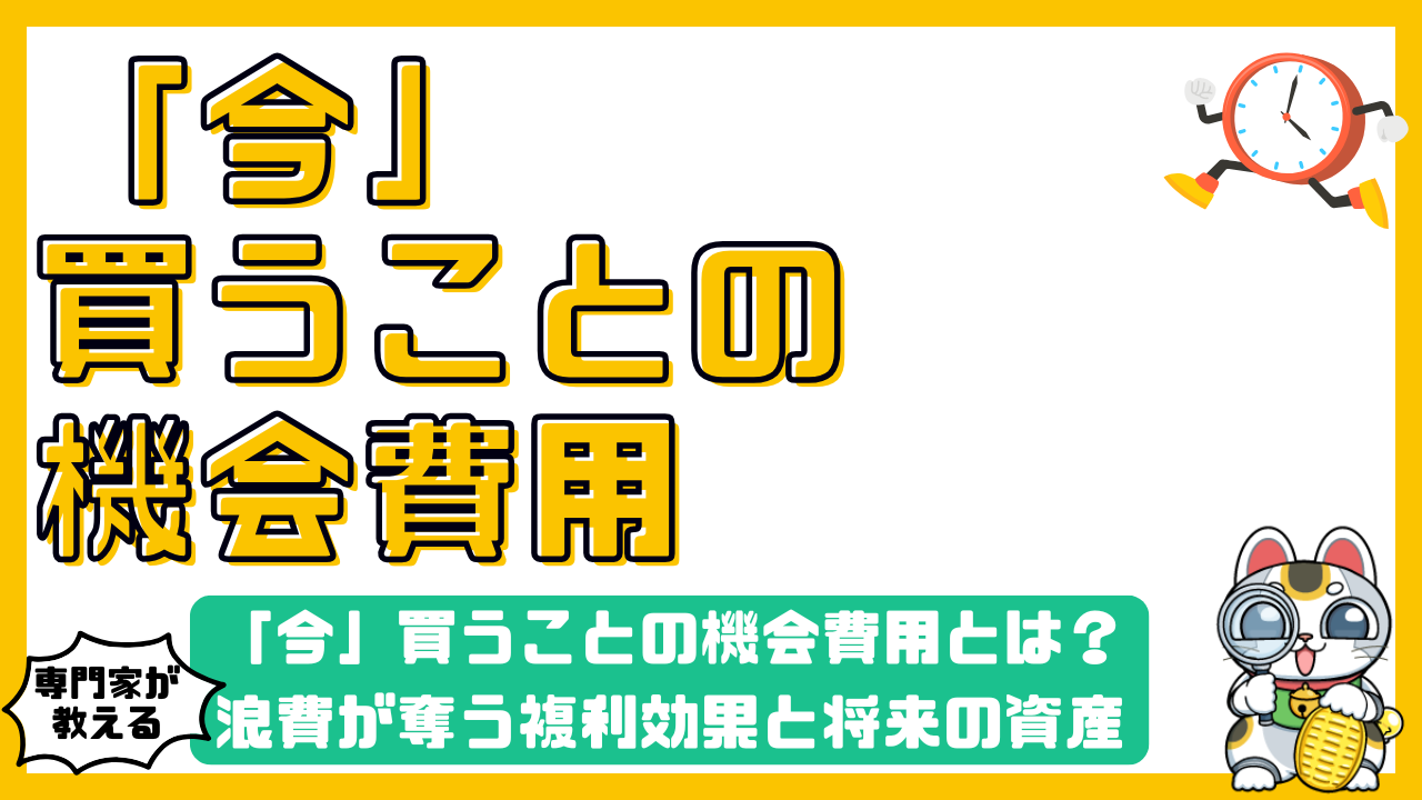 この「もし貯蓄や投資をしていれば、将来お金が増えていたかもしれない可能性」こそが、「今」使うことの機会費用です。つまり、消費の代償は、支払った金額そのものだけでなく、そのお金が将来生み出したはずの価値も含めて考える必要があるのです。