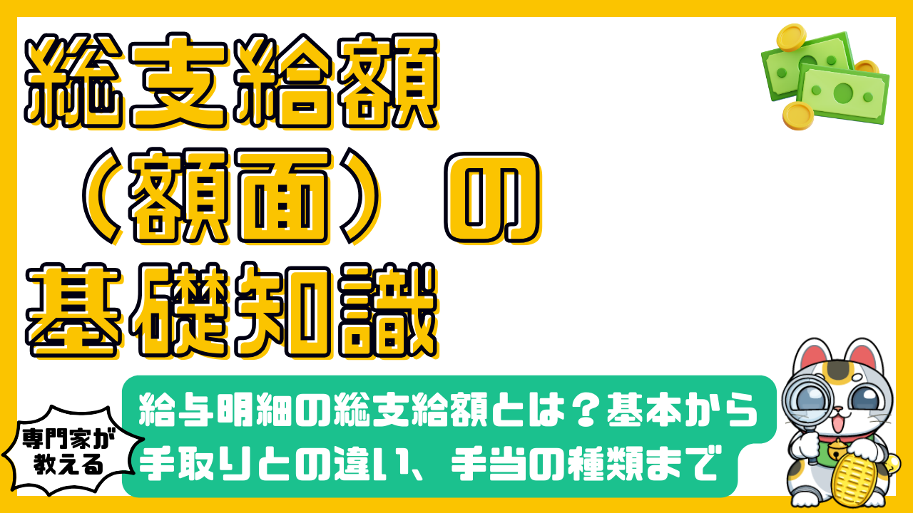 今回の記事では、給与明細に記載されている「総支給額(額面)」について、その意味や構成要素、手取り額との違いについて詳しく解説しました。総支給額は、会社があなたに支払う給与の総額を示す金額であり、基本給と各種手当で構成されています。手取り額は、総支給額から税金や社会保険料などが差し引かれた、実際に自分の口座に振り込まれる金額です。