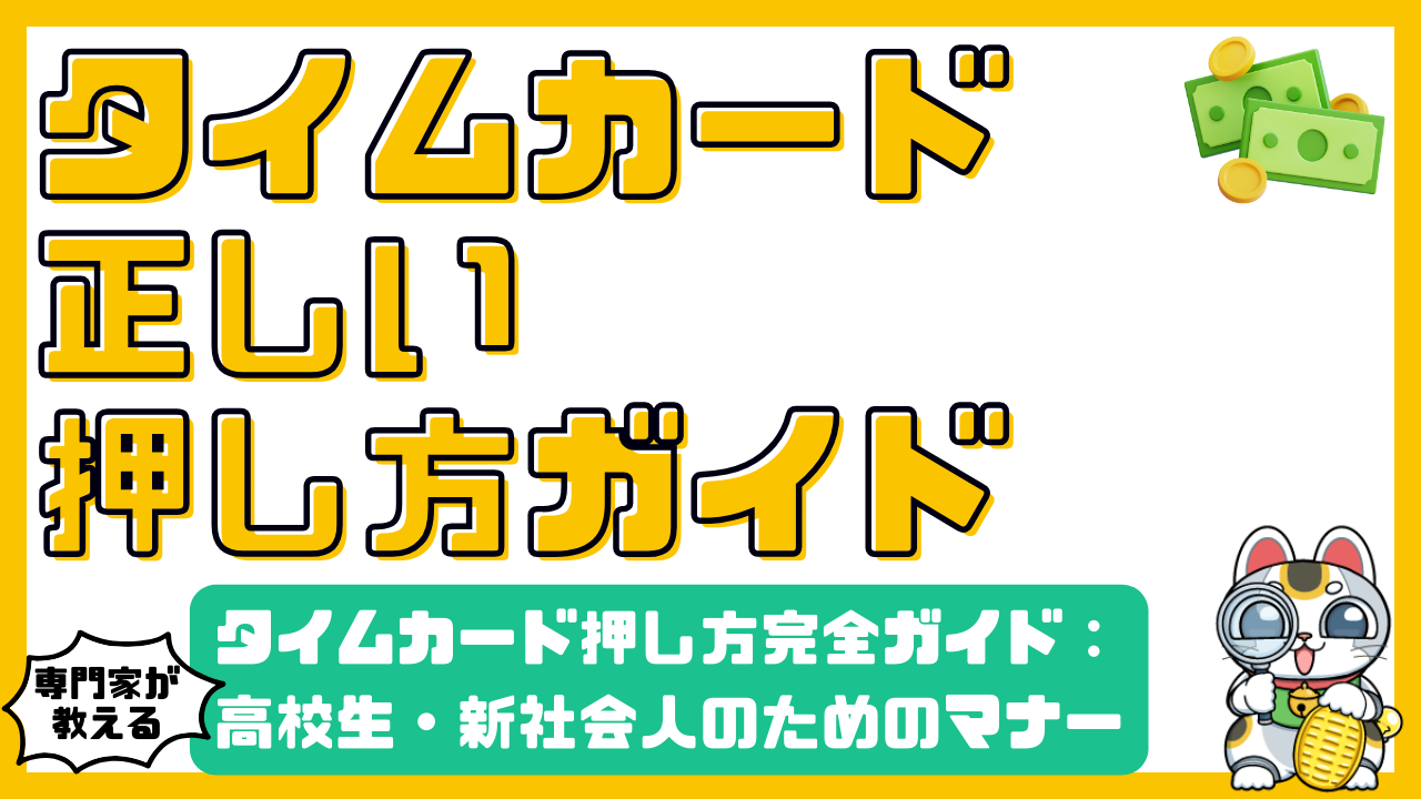 タイムカードは、皆さんの頑張りを記録する大切なツールです。正しい知識を身につけて、スムーズな社会人生活を送りましょう。