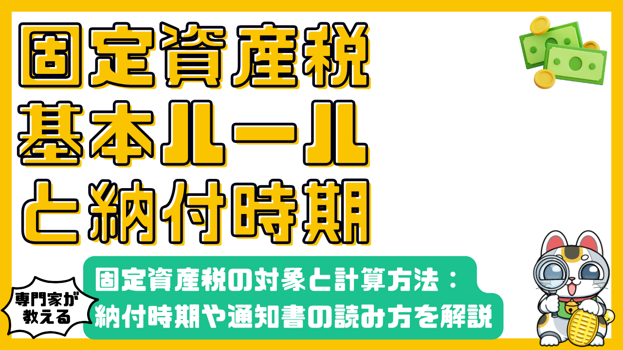 この記事では、固定資産税の対象となるもの、税額の計算方法、納付時期、納税通知書の読み方などを解説しました。固定資産税は、土地や家屋などの固定資産を持っている人が納める地方税であり、地域の公共サービスの財源として活用されます。税額は、「課税標準額×税率」で計算され、納税通知書で確認することができます。納付は、原則として年に4回の分割納付ですが、一括納付も可能です。納税通知書を理解し、納期限を守って納税しましょう。