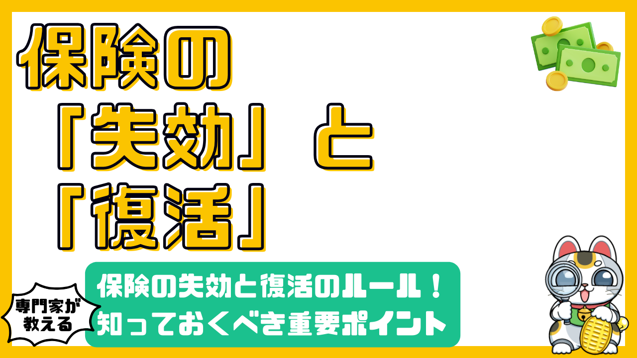 今回の記事では、保険の「失効」と「復活」について、詳しく解説しました。保険の失効は、保障が受けられなくなるだけでなく、再加入が難しくなる可能性もある、非常に大きなリスクを伴います。しかし、払込猶予期間の存在や、復活の制度を知っていれば、万が一の事態にも対応することができます。また、日頃から保険料の支払い方法を見直したり、保険会社からの通知をきちんと確認したりすることで、失効を未然に防ぐことができます。