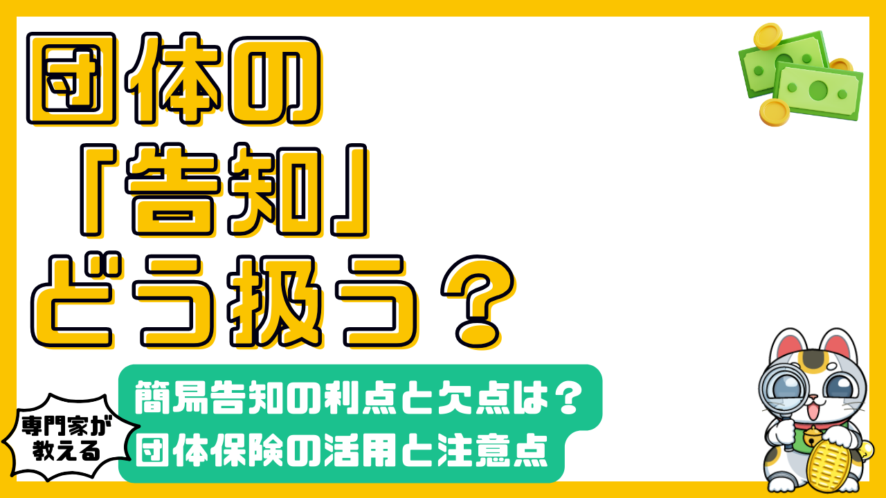 団体保険は、会社や組合などの団体を通して加入する保険です。個人で加入する保険と比べて保険料が割安になるなどのメリットがある一方で、告知義務(こくちぎむ)が簡易化されているケースがあります。しかし、この簡易化された告知には注意点も存在します。この記事では、団体保険の告知義務の原則から、簡易告知、無告知の条件、そして告知ルールを活用する際の注意点までを詳しく解説します。