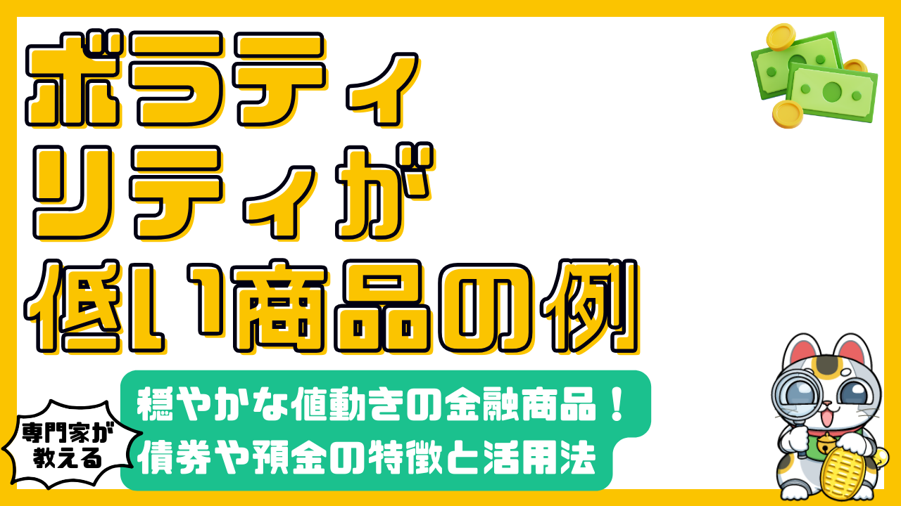 ボラティリティが低い金融商品の代表例としては、以下のものが挙げられます。