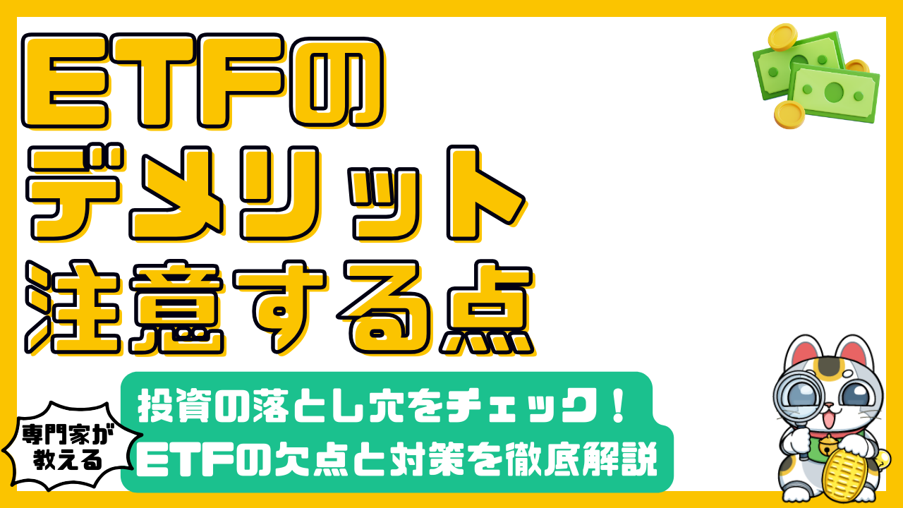 この記事では、ETF投資における代表的なデメリットを詳しく解説し、それらを理解した上でどのように対策を講じるべきか、具体的な方法を提示します。これからETF投資を始めようと考えている方はもちろん、すでにETFを保有している方も、ぜひ参考にしてください。