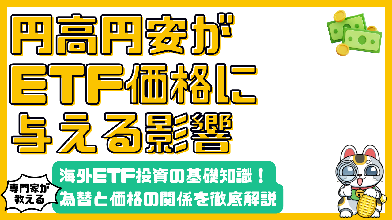 この記事では、円高・円安が海外ETFの価格にどのような影響を与えるのか、具体的な例を交えながらわかりやすく解説します。特に、為替ヘッジなしの海外ETFに焦点を当て、価格変動のメカニズムやリスク管理の方法について詳しく見ていきましょう。