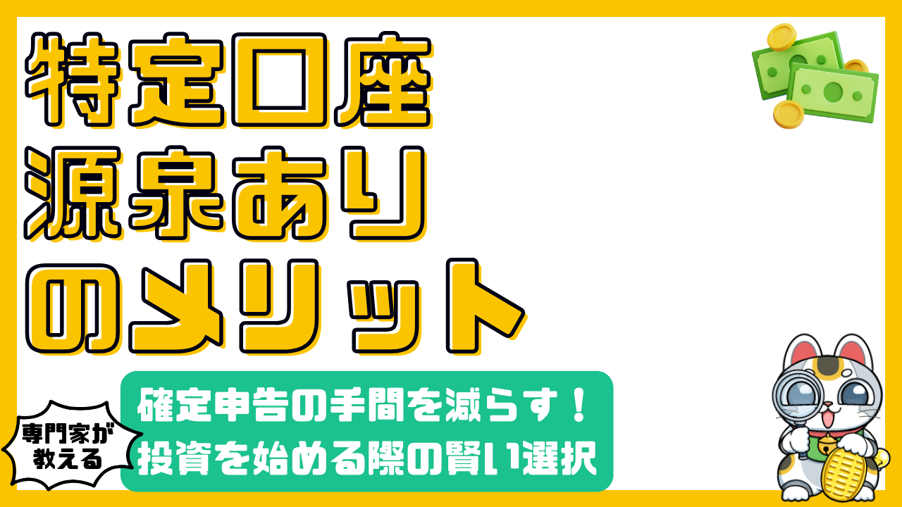 この記事では、特定口座(源泉徴収あり)のメリットをわかりやすく解説します。投資初心者の方でも安心して理解できるよう、難しい言葉はできるだけ使わず、具体的な例を交えながら説明していきますので、ぜひ最後まで読んでみてください。