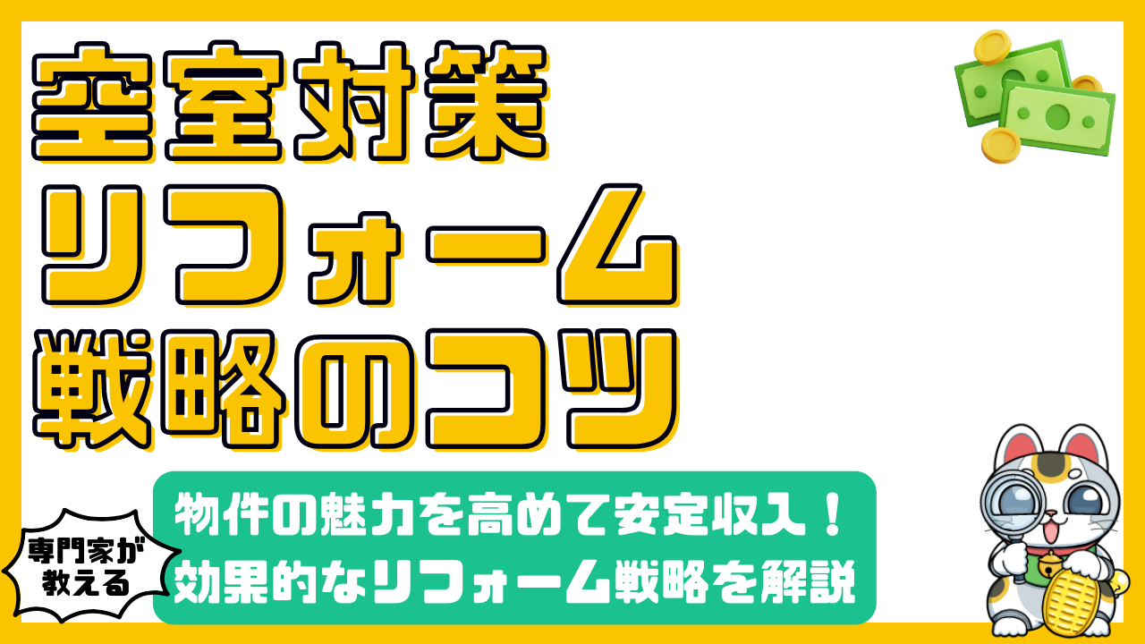 この記事では、空室対策としてのリフォーム戦略について解説しました。リフォームとリノベーションの違い、リフォームの必要性、費用対効果の高い設備、リフォームの注意点、投資としての判断基準など、空室対策に必要な知識を網羅的に学ぶことができました。