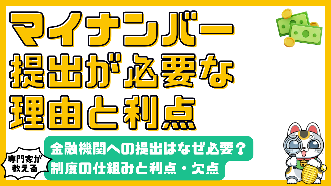 そこでこの記事では、マイナンバー制度の基本から、金融機関がマイナンバーの提出を求める理由、提出することのメリット・デメリット、そして提出時の注意点まで、わかりやすく徹底的に解説します。