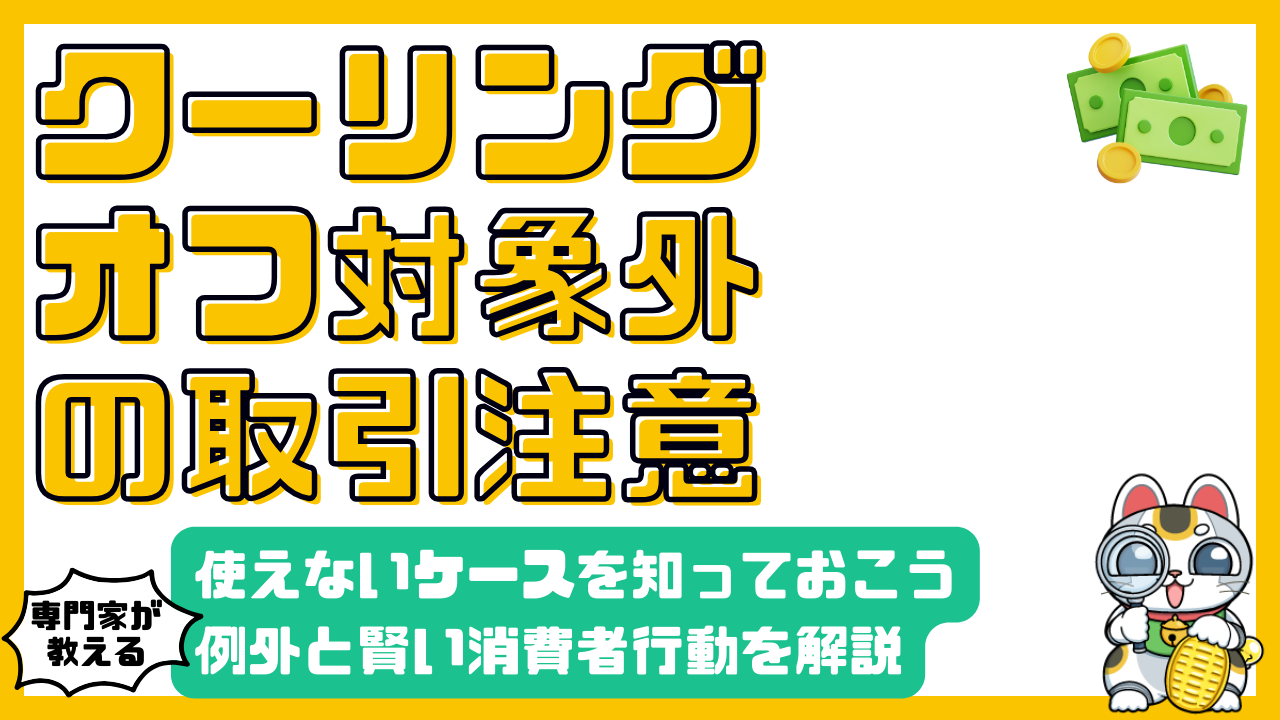 これらの点に注意することで、クーリングオフが適用されない取引であっても、トラブルを未然に防ぐことができます。消費者として賢く行動し、自分の身を守りましょう。