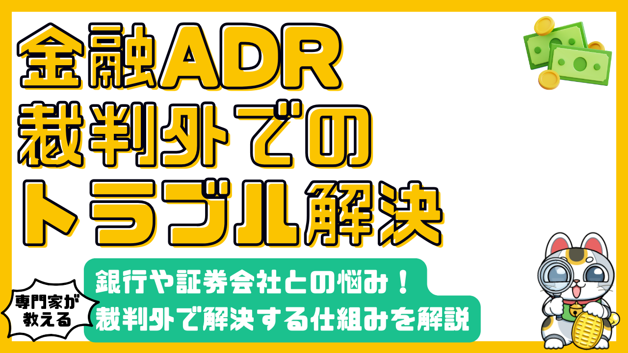 もし話し合いが平行線になったとき、次に思い浮かぶのは「裁判」かもしれません。しかし、裁判は多額の費用や長い年月がかかるため、一般の消費者にとっては非常にハードルが高い選択肢です。そこで知っておきたいのが、金融ADR(エーディーアール)制度です。これは、裁判所を通さずに、中立・公正な第三者機関が間に入ってトラブルの解決をサポートしてくれる仕組みです。